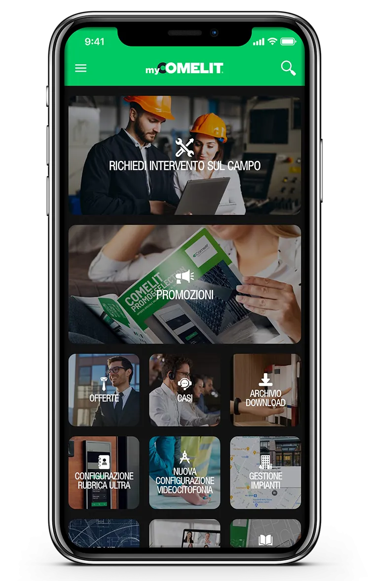 Simple, immédiate et personnalisée. MyComelit, grâce à tous les services qu’elle propose, simplifie le travail de tous les professionnels du secteur : installateurs, intégrateurs de systèmes, responsables de la sécurité, gestionnaires de bâtiments et architectes.