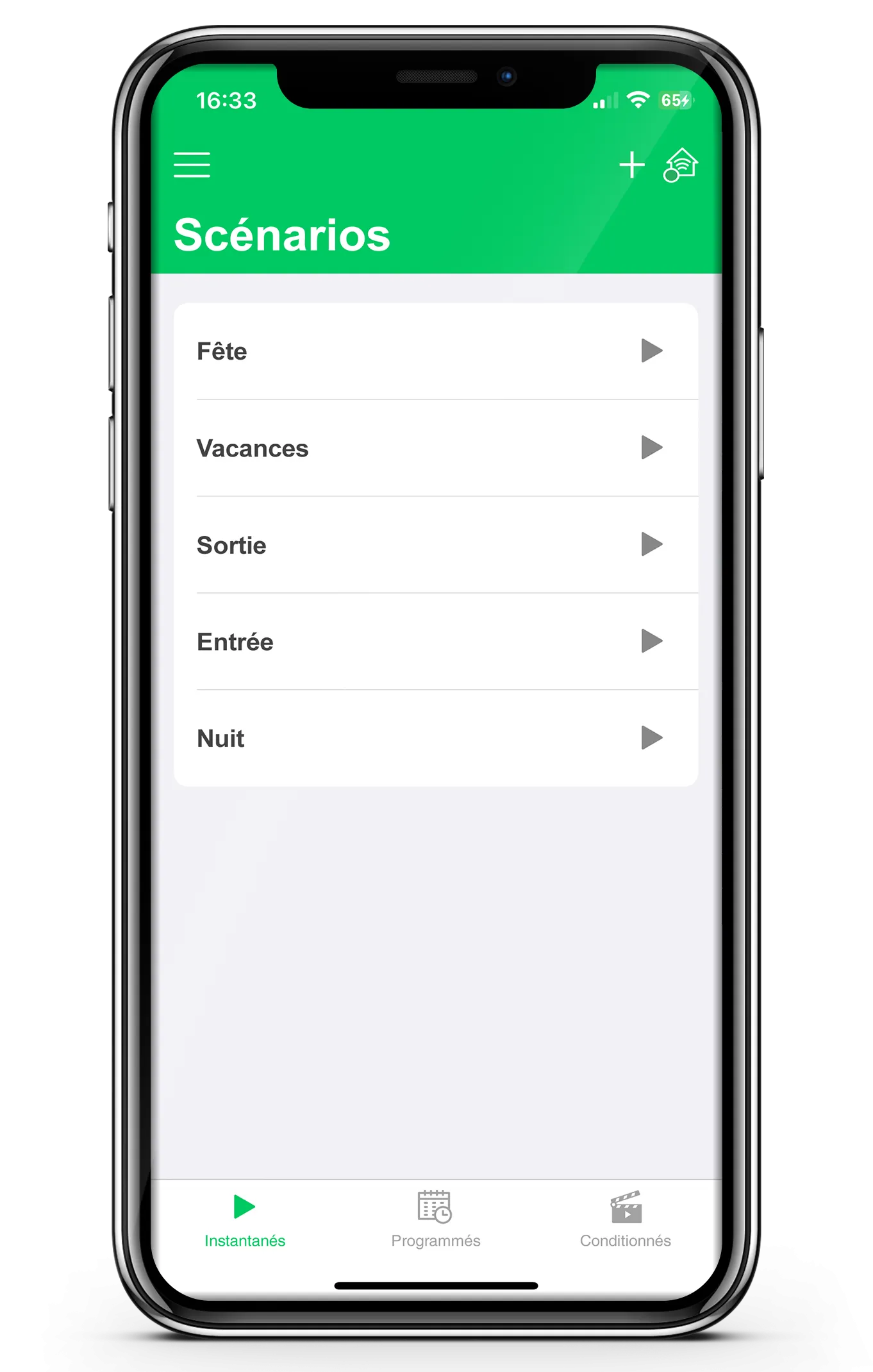 La simplicité d’exécuter plusieurs actions simultanément avec une seule commande, comme allumer les lumières, baisser les stores et allumer la télévision d’un seul geste.
